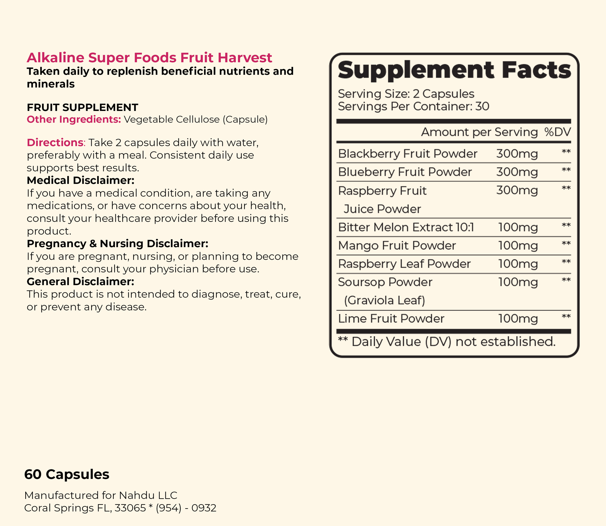 • Start with one capsule a day if fruits and vegetable are not naturally consumed or a part of your diet.